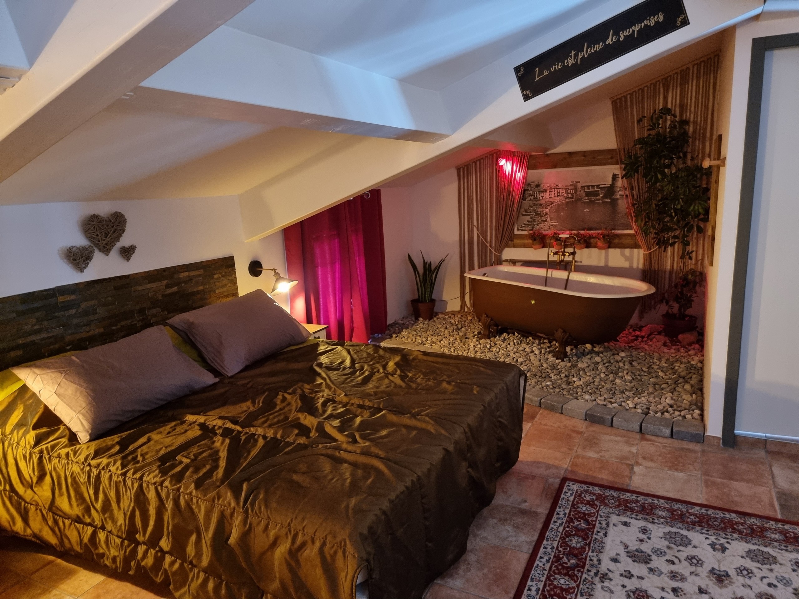 – Une chambre double avec lit Queen Size (160 cm) (capacité d’accueil : 2 adultes)